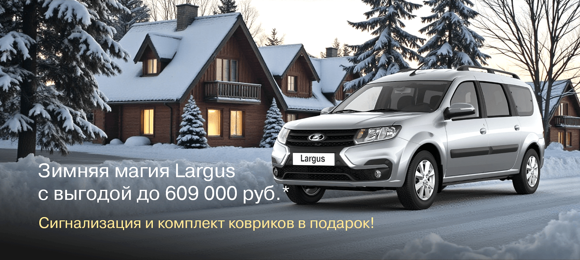 * Не является публичной офертой. Кредит предоставляет АО «Авто Финанс Банк» (лицензия Банка Казахстан №170 от 06.09.2023 г.). ПСК: 0,149%-35,599% годовых. Выгода предоставляется при покупке нового автомобиля LADA Largus комплектации RS045-X80-A3. Параметры расчета: РРЦ - 2 165 000₸. Выгода 200 000₸ предоставляется при покупке автомобиля в кредит по программам LADA Finance Правительства РФ № 364 от 16.04.2015 (изменениями и дополнениями)), предоставляемой гражданам РФ, попадающим под условия госпрограммы, выгода 20 000₸. предоставляется покупке автомобиля через онлайн-сервис Авито в рамках акции "Хватамба с Авито". Акция действительна до 31 декабря 2025 года.